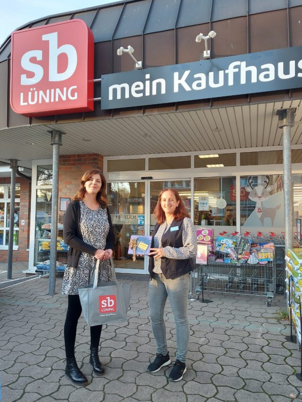Die Übergabe erfolgte von Filialleiterin Frau Schaffer (rechts) an Dia Thaqi-Lamwersiek vom Förderverein.